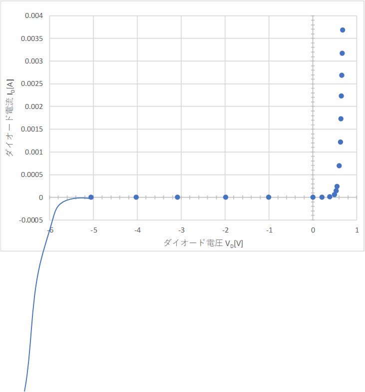 ・抵抗の電圧VRよりダイオードの電圧VDと電流値IDを算出する