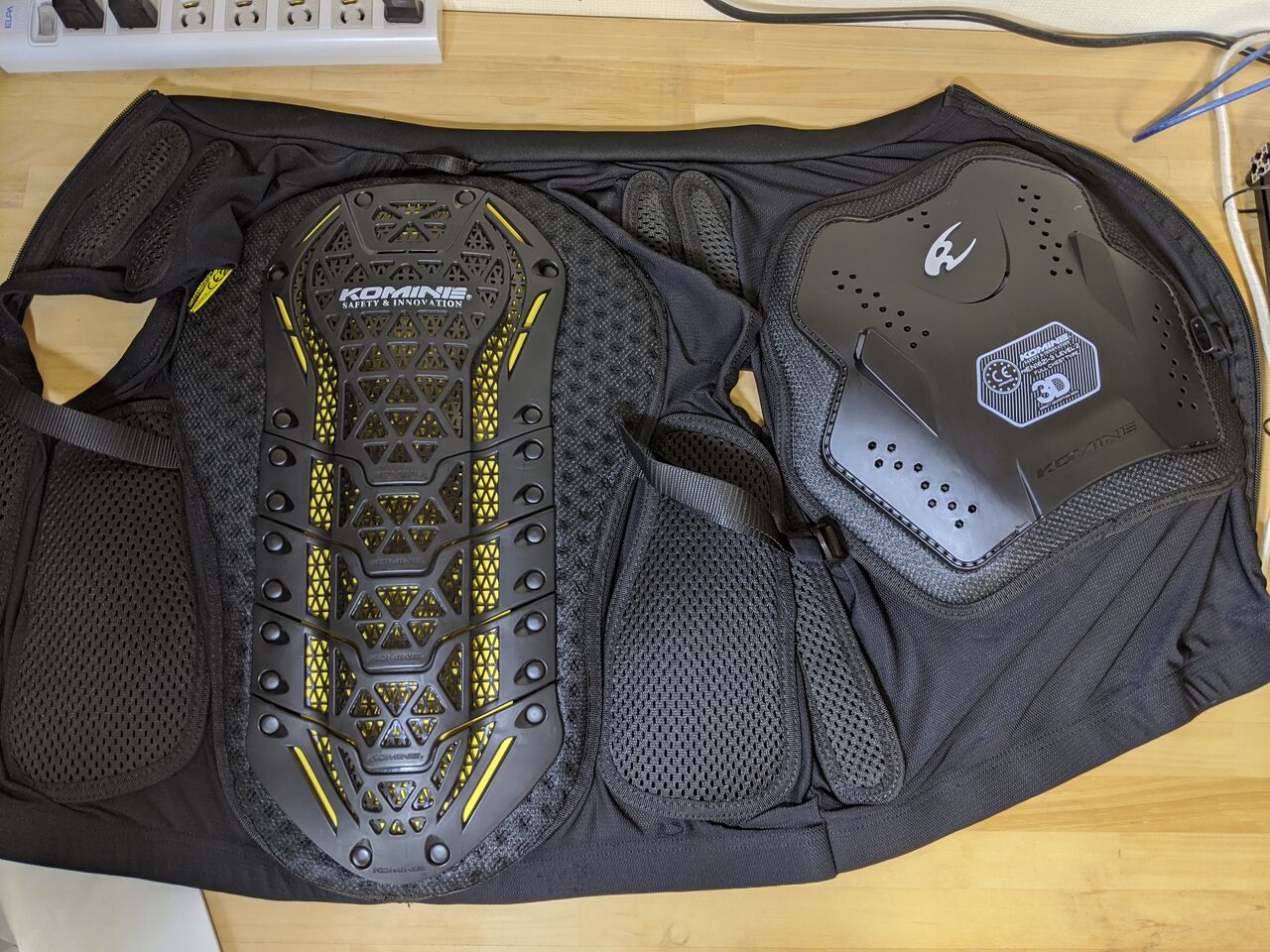 上半身は胸を守ることを第一としました!バイク事故の死因の上位に胸部損傷が含まれているからです。どうやら、ぶつかった時にハンドルに胸をぶつけるらしい…そして、胸の中心で分かれているタイプはプロテクターとしてあまり意味がない…という事で持っているものはこちら!!