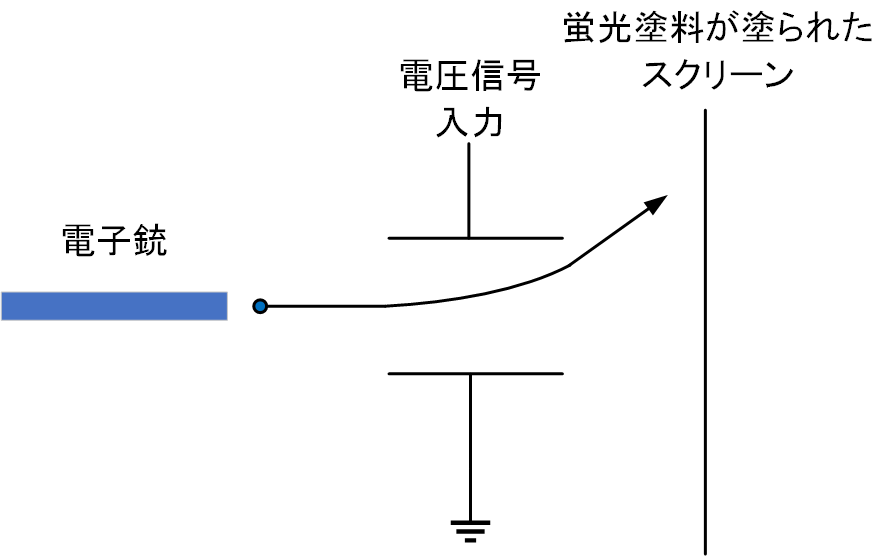世界で初めて作られたオシロスコープは、陰極線管に電圧信号を入力することで陰極線を曲げて波形を得ていた、アナログオシロスコープです。