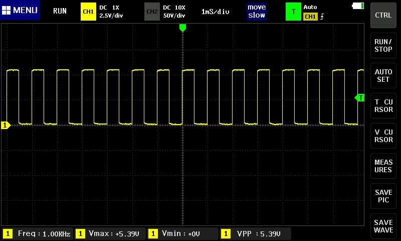 今回は試しという事で、5 V、1 kHz、の矩形波を見てみました。図10にDANIU ADS1013Dで測定した5 V、1 kHz、の矩形波を示します。図10 DANIU ADS1013Dで測定した5 V、1 kHz、の矩形波